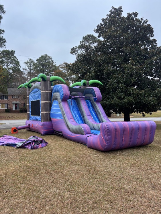 Complete with a roomy jumping area, basketball hoop and slide, the purple crush combo is a compact inflatable for maximum entertainment. Perfect unit for indoor or outdoor use, with a flashy design that’s sure to draw a crowd! This combo unit is perfect for any ages and can be rented it out WET (Pool) or DRY (Stopper)